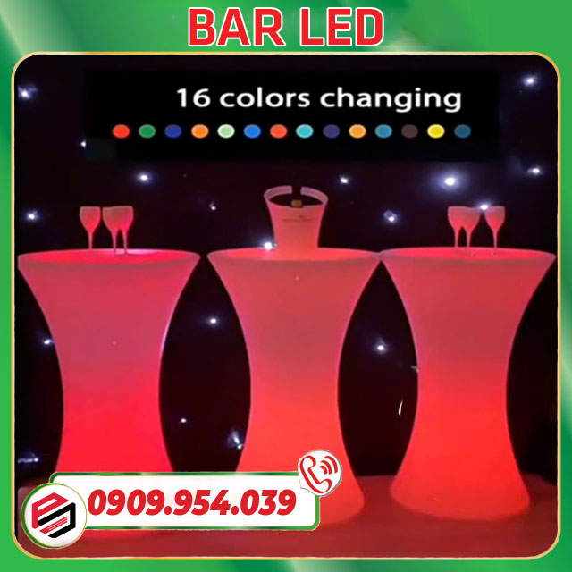 Hiệu Ứng Ánh Sáng Đa Dạng & Màu Sắc: Điểm nổi bật tiếp theo của bàn bar LED đó là khả năng thay đổi màu sắc linh hoạt, với 16 màu thay đổi tùy ý thì bạn có thể chọn ra màu sắc phù hợp nhất với chủ đề của sự kiện đang hướng tới. Các màu sắc đáng chú ý nhất có thể kể đến là các tông màu từ nhẹ nhàng như trắng, xanh dương cho đến những tông màu nổi bật như đỏ, vàng, tím và đồng thời đèn bar LED có thể thay đổi hiệu ứng ánh sáng một cách sôi động hoặc mờ ảo, nhẹ nhàng theo ý thích của bạn.